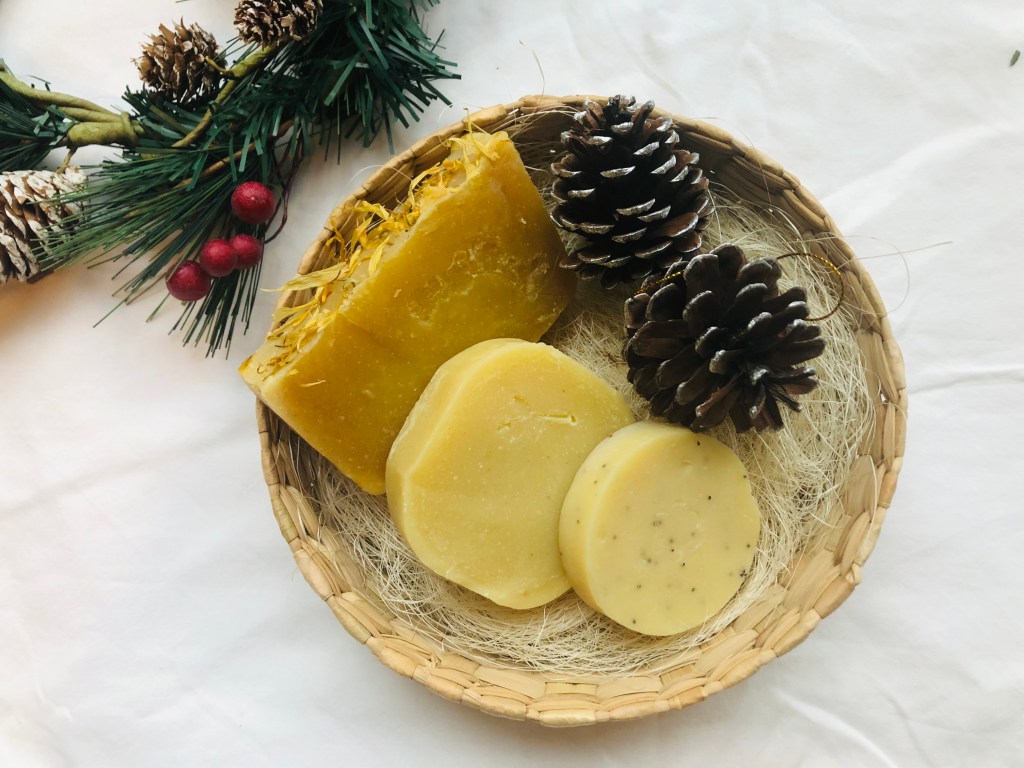 - Un shampoing en barre à l’orange fait de façon artisanal (au jojoba et noix de coco, sans parfum, ni produits chimiques)